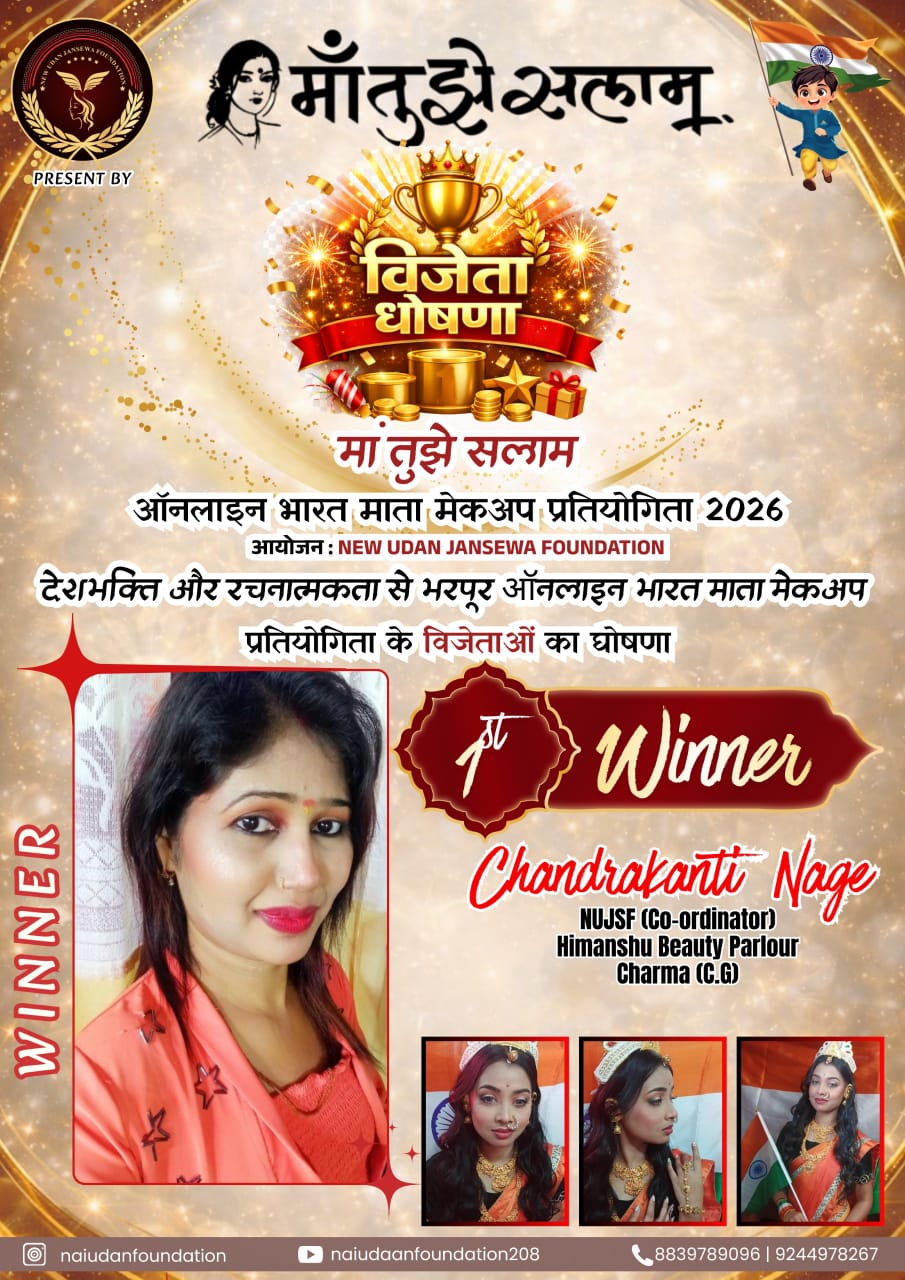 आत्मनिर्भर नारी शक्ति की प्रेरणादायक मिसाल बनी चंद्रकांति नागे सुनील चिंचोलकरचारामा, कांकेर। न्यू उड़ान जनसेवा फाउंडेशन के तत्वावधान में आयोजित भारत माता थीम प्रतियोगिता का भव्य एवं सफल आयोजन किया…